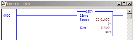 Once you have your File #'s built and your protocol selected, all you must do in your program is move the data you wish to make available via Modbus into the appropriate file types that you've assigned above. For example, if you wish to move the accumulated value of C5:0 into holding register 40010, then you must build a rung with a MOV statement which will do this: See below: